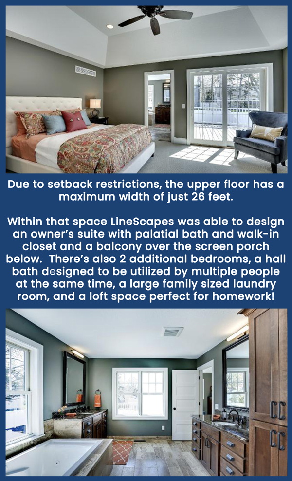 With only a 42 feet wide lot, this home was limited to just 32 feet of width. In addition, very restrictive limitations to building height and lot coverage made designing a 4 bedroom, 4 bath house a challenge. A challenge that LineScapes excels at! The result is a stunning 3,500 square foot home with quality design and materials throughout.